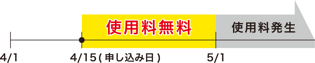 申し込み月は無料申し込み当月の使用料は無料です。