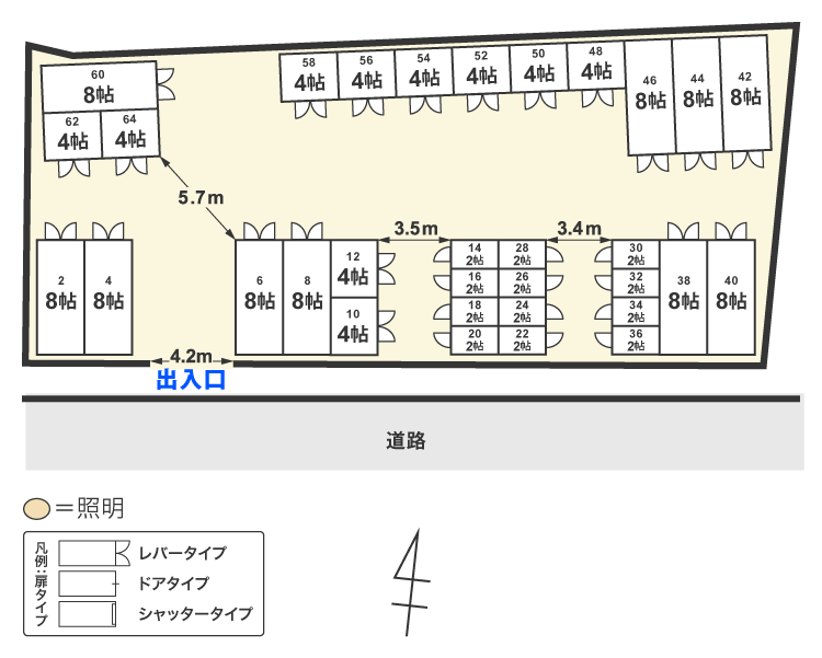 | 種別 | 広さ | 階 | 月額使用料(税込) | 幅×奥行×高さ | お見積り | 申込み |