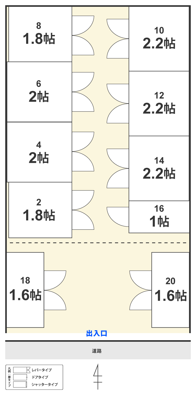 | 種別 | 広さ | 階 | 月額使用料(税込) | 幅×奥行×高さ | お見積り | 申込み |
