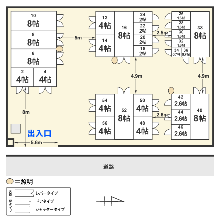 | 種別 | 広さ | 階 | 月額使用料(税込) | 幅×奥行×高さ | お見積り | 申込み |