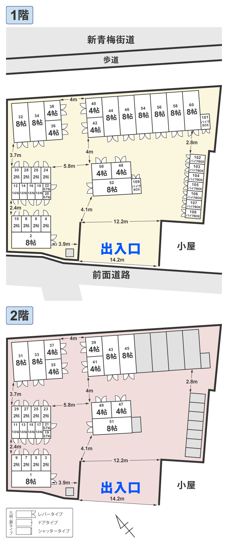 | 種別 | 広さ | 階 | 月額使用料(税込) | 幅×奥行×高さ | お見積り | 申込み |