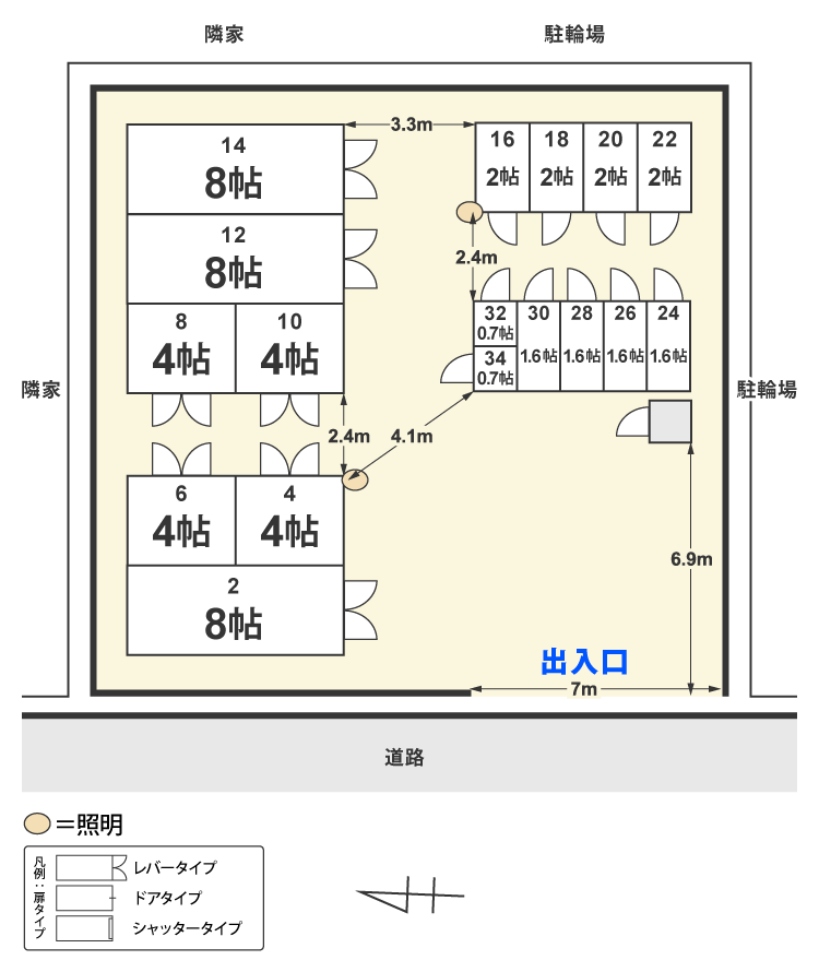 | 種別 | 広さ | 階 | 月額使用料(税込) | 幅×奥行×高さ | お見積り | 申込み |