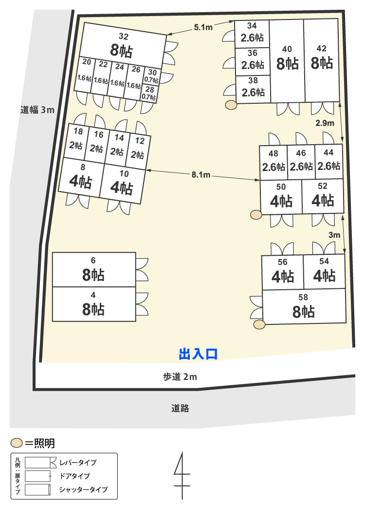 | 種別 | 広さ | 階 | 月額使用料(税込) | 幅×奥行×高さ | お見積り | 申込み |