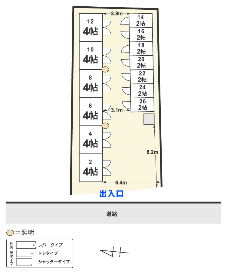 | 種別 | 広さ | 階 | 月額使用料(税込) | 幅×奥行×高さ | お見積り | 申込み |